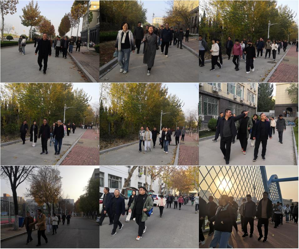 为丰富教职工精神文化生活,倡导“健康工作、快乐生活”的理念,增强团队凝聚力与向心力,11月11日下午,我院工会组织‘活力校园·健康同行’教职工健步走活动,全院教职工踊跃参与。
