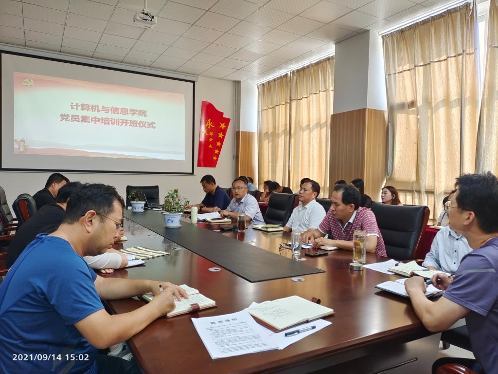 为进一步抓实全院党员教师政治理论水平,提高政治站位,更好地发挥党员教师在学院发展中的先锋模范作用,9月14日下午,计算机与信息学院在学院会议室0326举行党员教育培训开班仪式并进行第一课学习,全体教师党员参加了开班仪式。