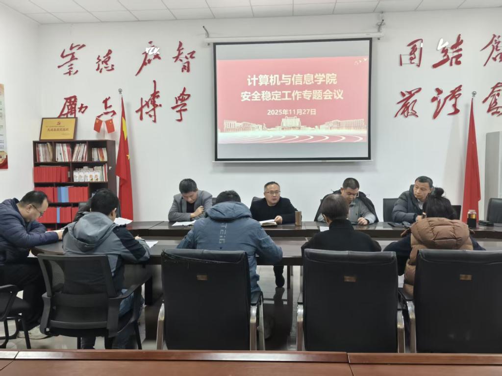 11月27日上午,学院在明理楼三楼党建活动室召开安全稳定工作专题会议。学院党委班子成员、全体辅导员、班主任参会。