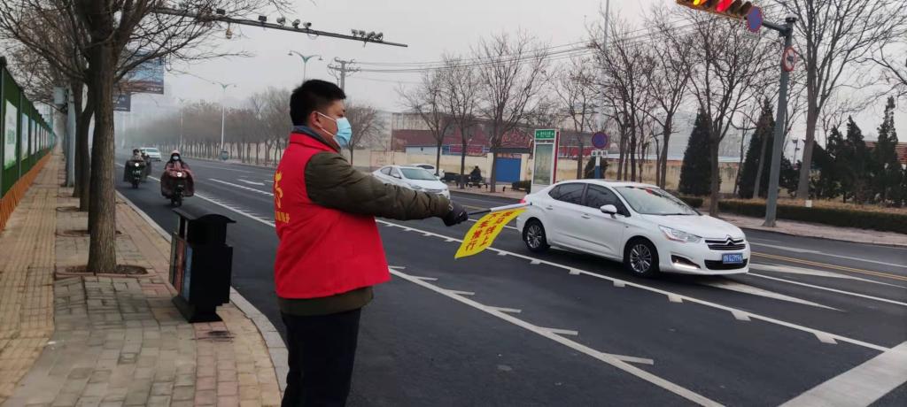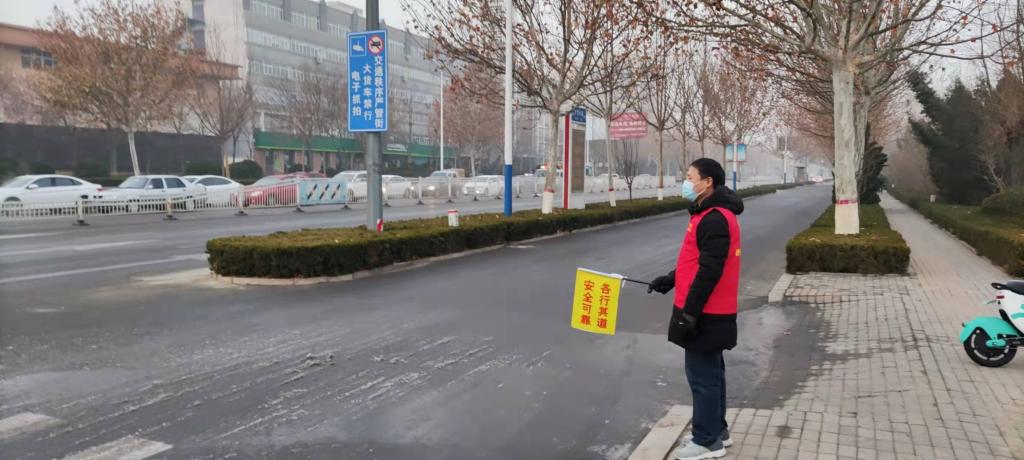 1月8日,计算机与信息学院教工党员在德兴北大道与大学西路交叉口参加文明交通劝导志愿服务活动。