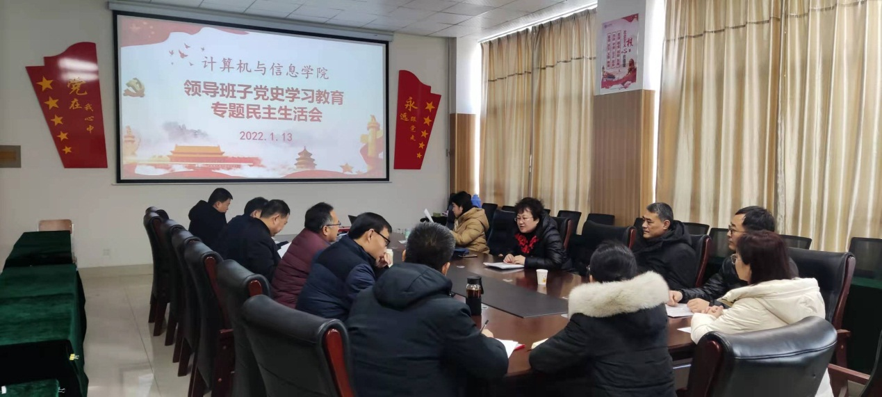 2022年1月13日下午,计算机与信息学院在明理楼326会议室召开处级领导班子党史学习教育专题民主生活会。学校督导三组组长冯琨带领组员到会指导。学院党委书记王付山、院长张建臣等7位党委班子成员参加会议,会议由王付山书记主持。