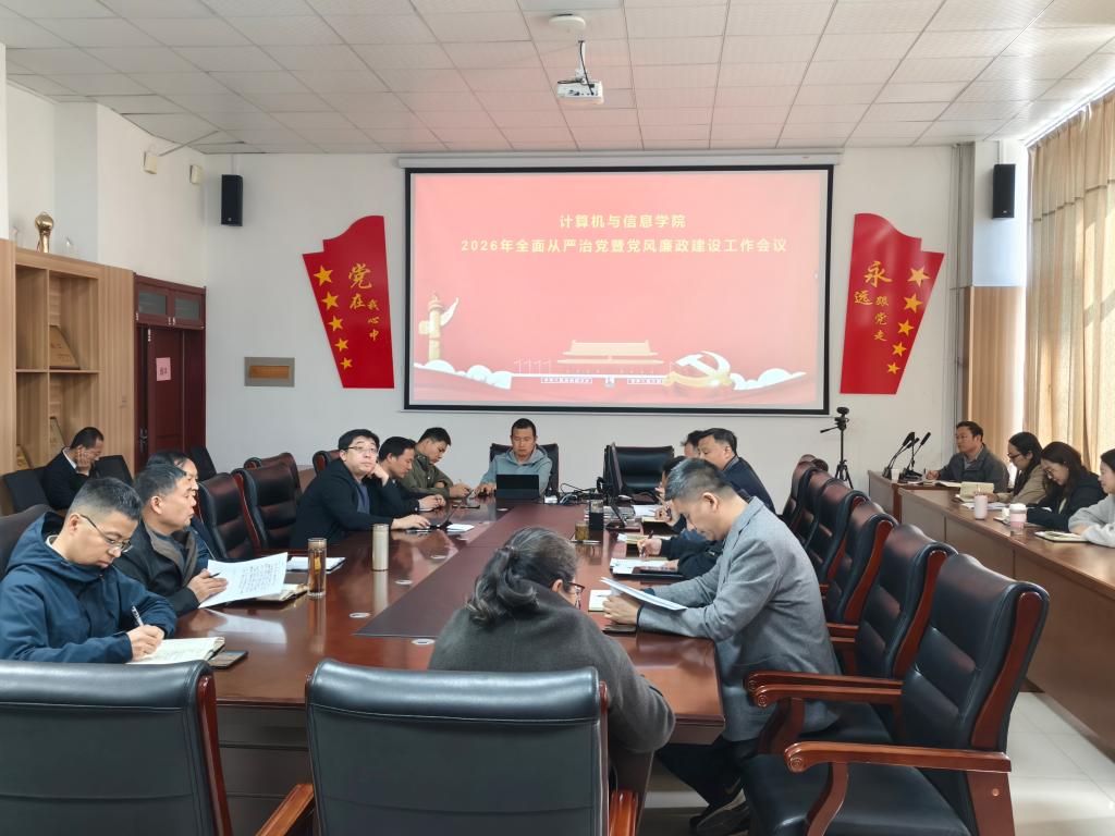 为深入学习贯彻二十届中央纪委五次全会精神,全面落实学校党委关于全面从严治党工作部署,压紧压实管党治党政治责任,4月7日,计算机与信息学院召开2026年全面从严治党暨党风廉政建设工作会议。学院领导班子成员、科级以上干部、全体党员参加会议,学院院长、党委副书记郭长友主持会议。