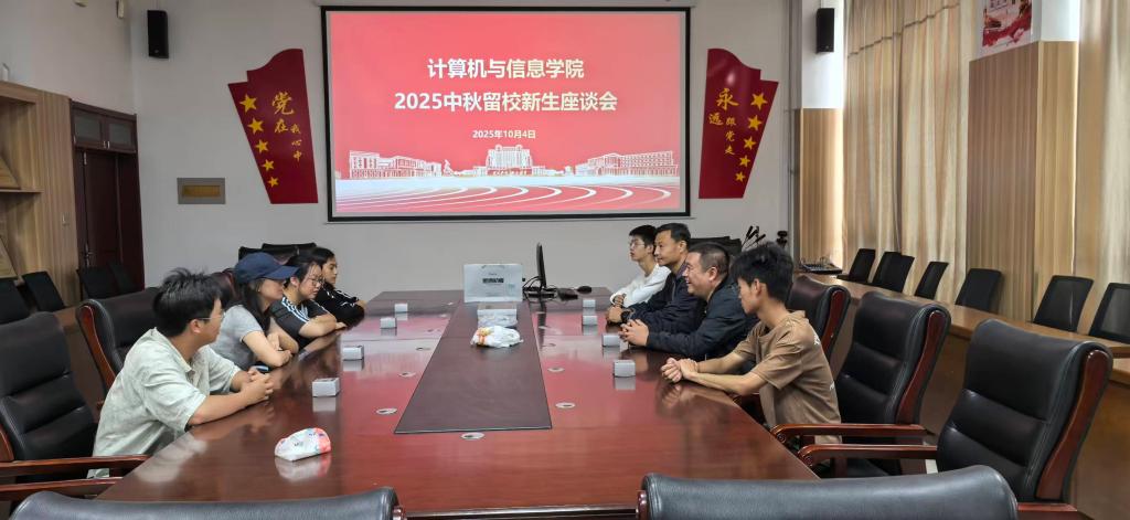 月满中秋,情系学子。10月4日上午,计算机与信息学院2025年中秋节留校新生座谈会在明理楼0326会议室温情举行。学院主要负责人、新生辅导员及因路途遥远未能返乡的疆豫学子共聚一堂,同赏明月,共话成长。