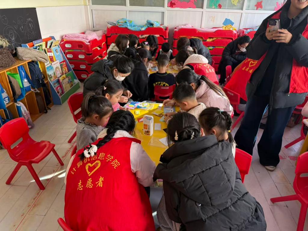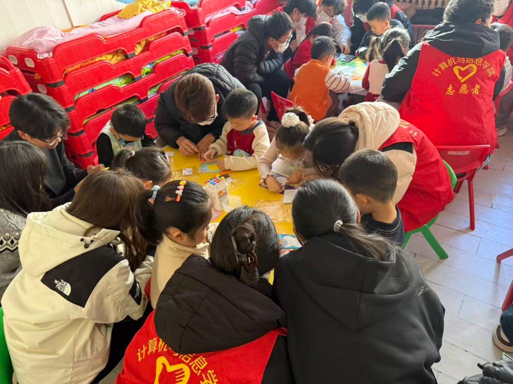 11 月 25 日,计算机与信息学院 2025 级网络空间安全 4 班志愿者团队走进萧何庄社区小精灵幼儿园,开展 “指尖造趣,童梦启航”儿童手工公益活动。